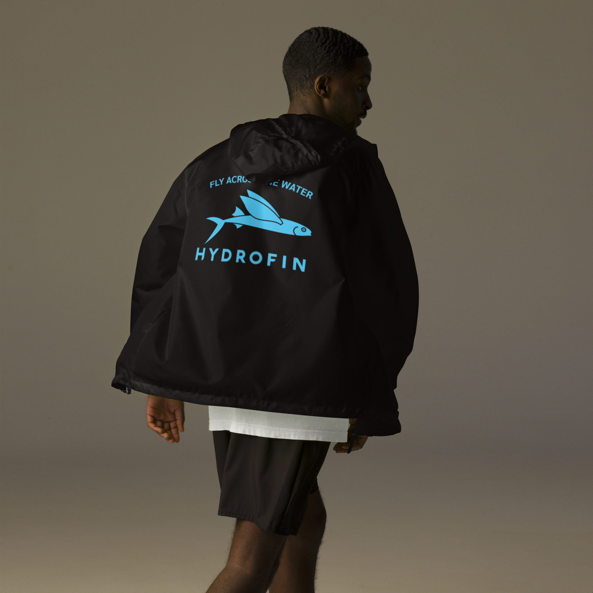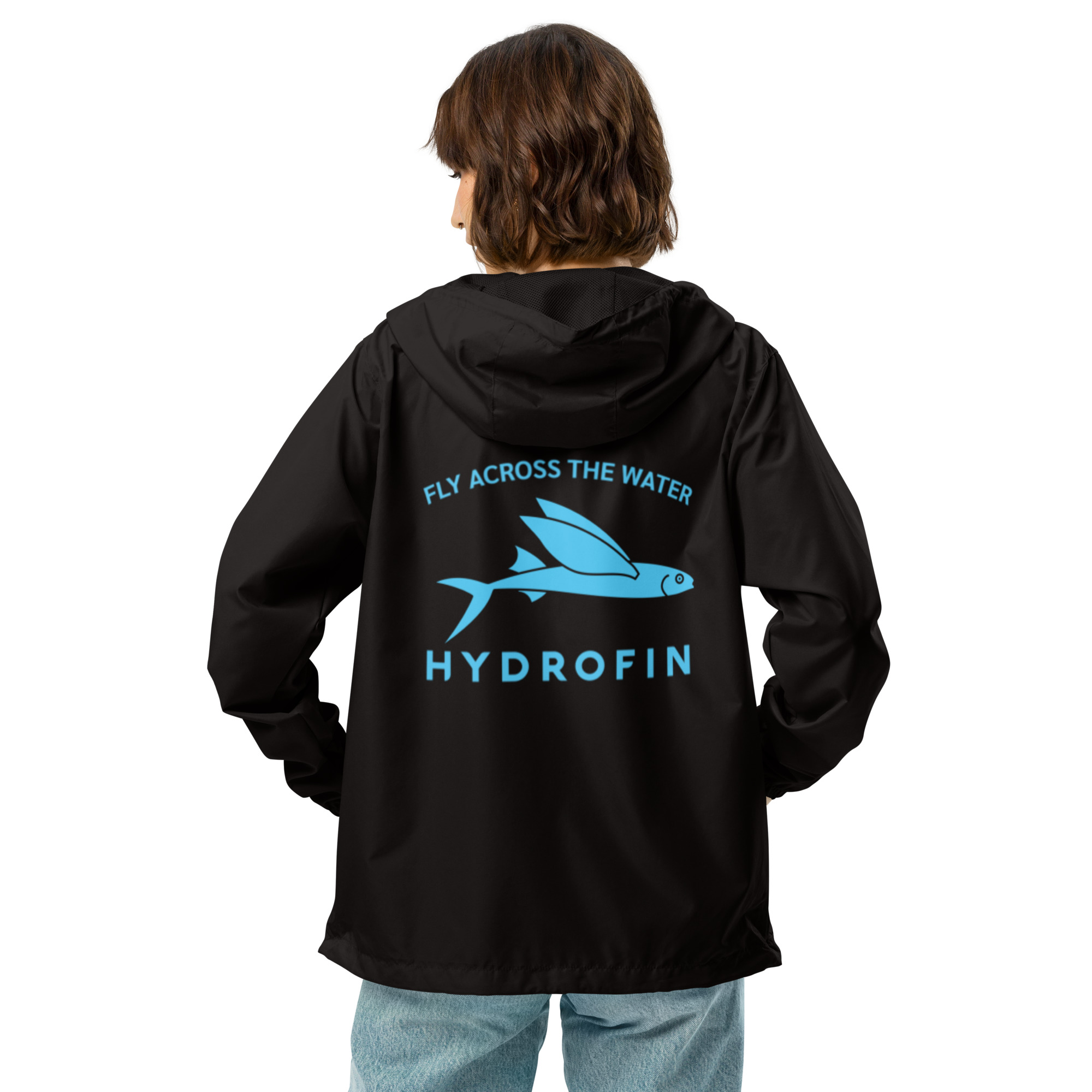 Hydrofin Classic Black Unisex lightweight zip up windbreaker
