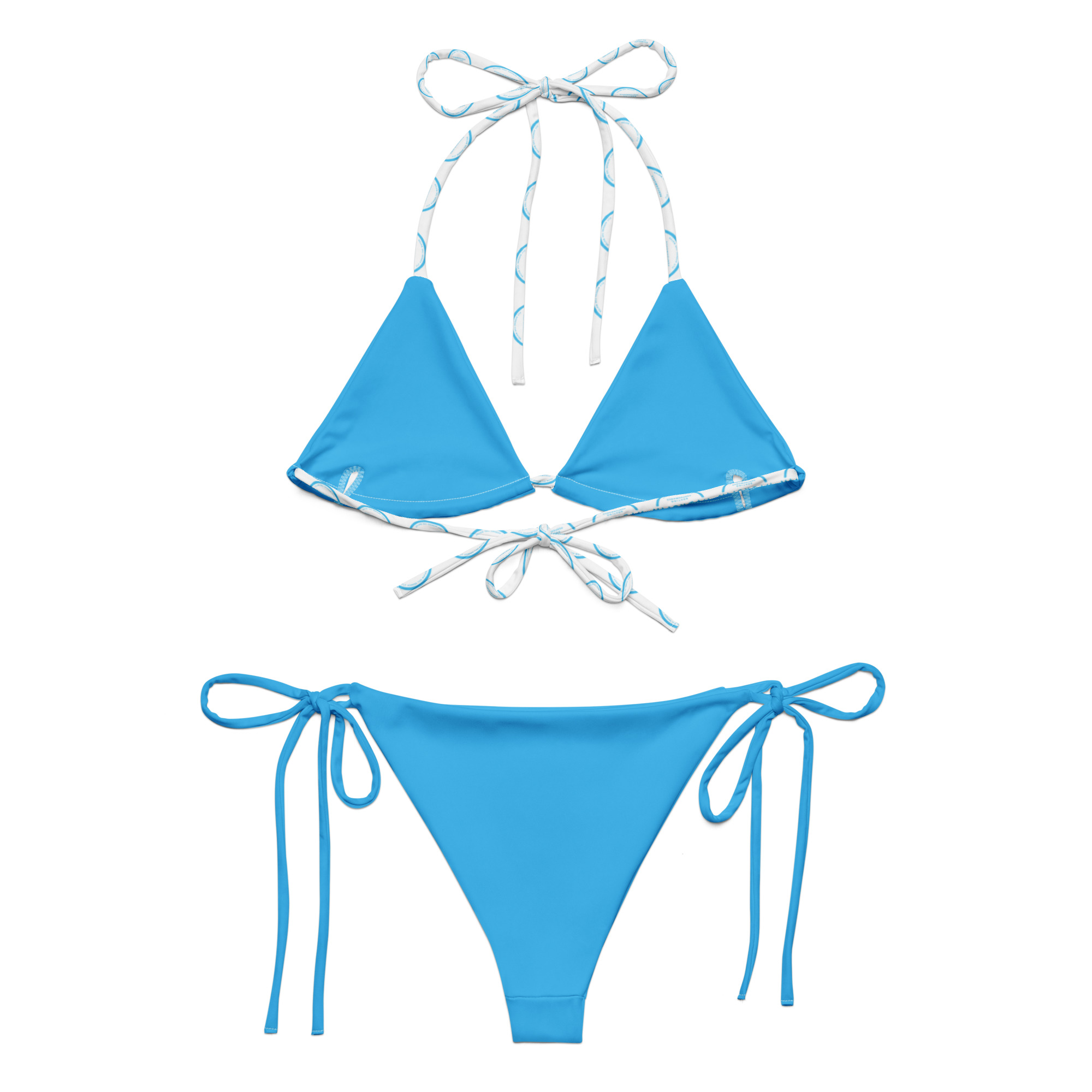 Hydrofin Logo Blue and White All-over print recycled string bikini