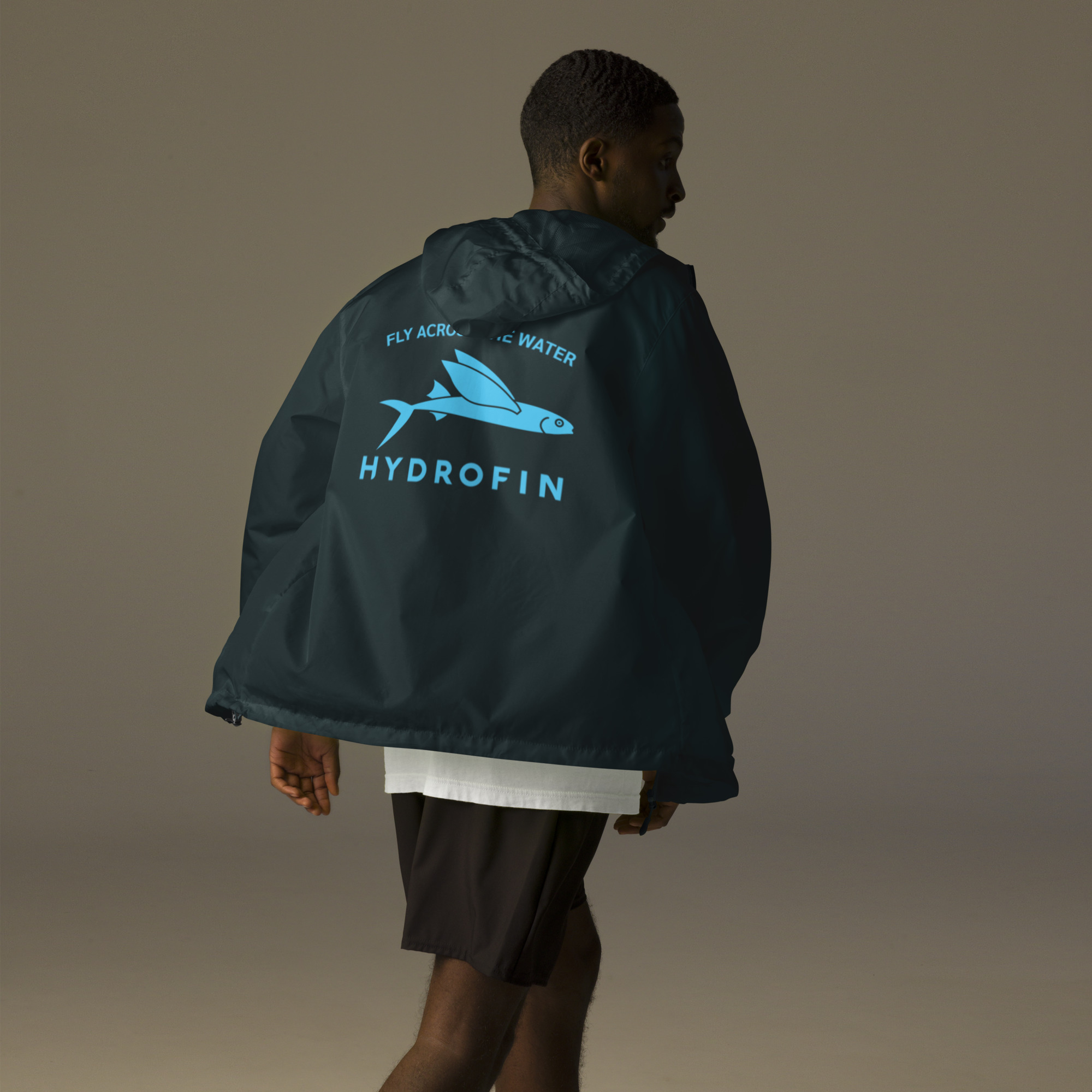 Hydrofin Navy Unisex lightweight zip up windbreaker